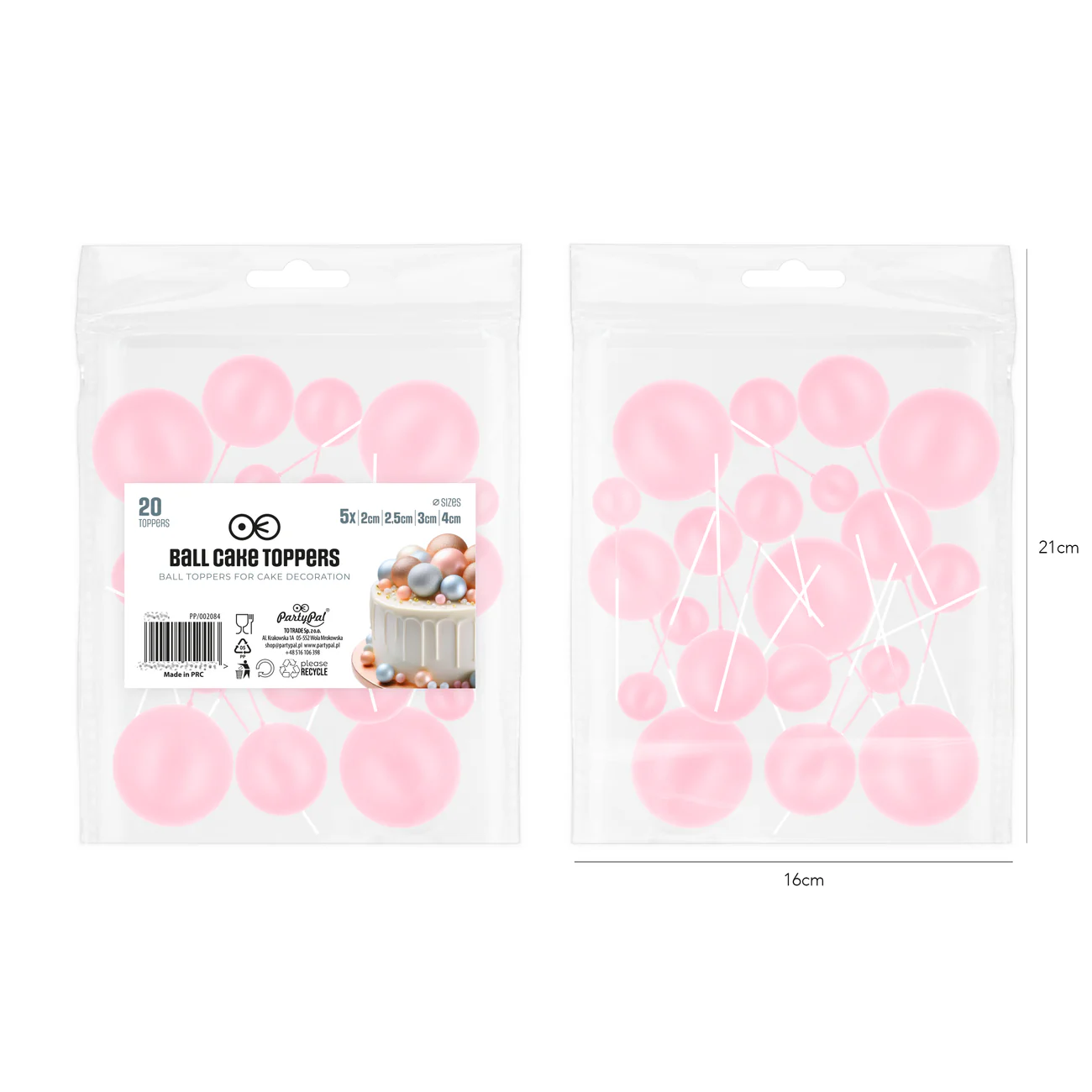 PartyPal Toppery na tort kulki jasnoróżowe matowe