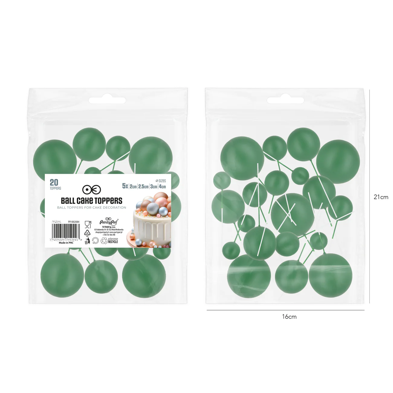 PartyPal Toppery na tort kulki zielone matowe 20sz