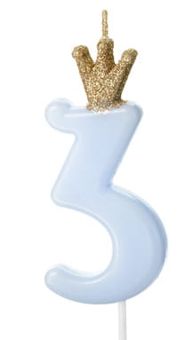 Partydeco Świeczka cyferka 3 niebieska z koroną