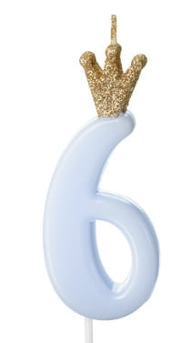 Partydeco Świeczka cyferka 6 niebieska z koroną