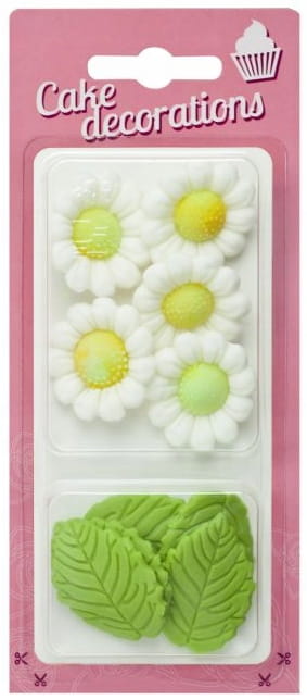 RoseDecor Rumianki cukrowe białe z liśćmi